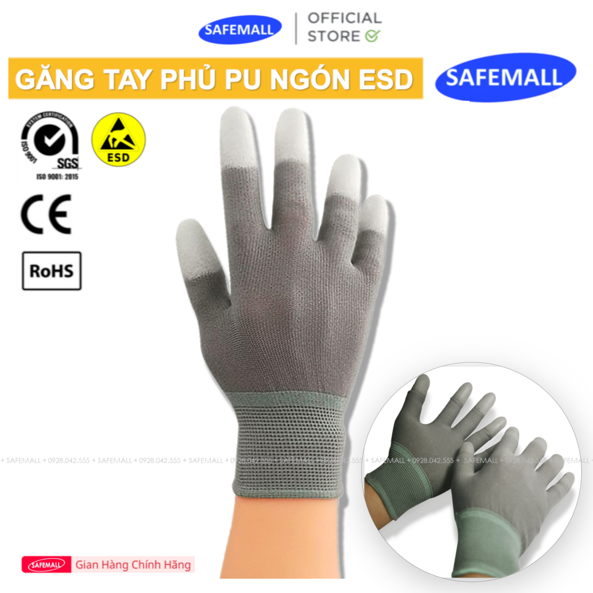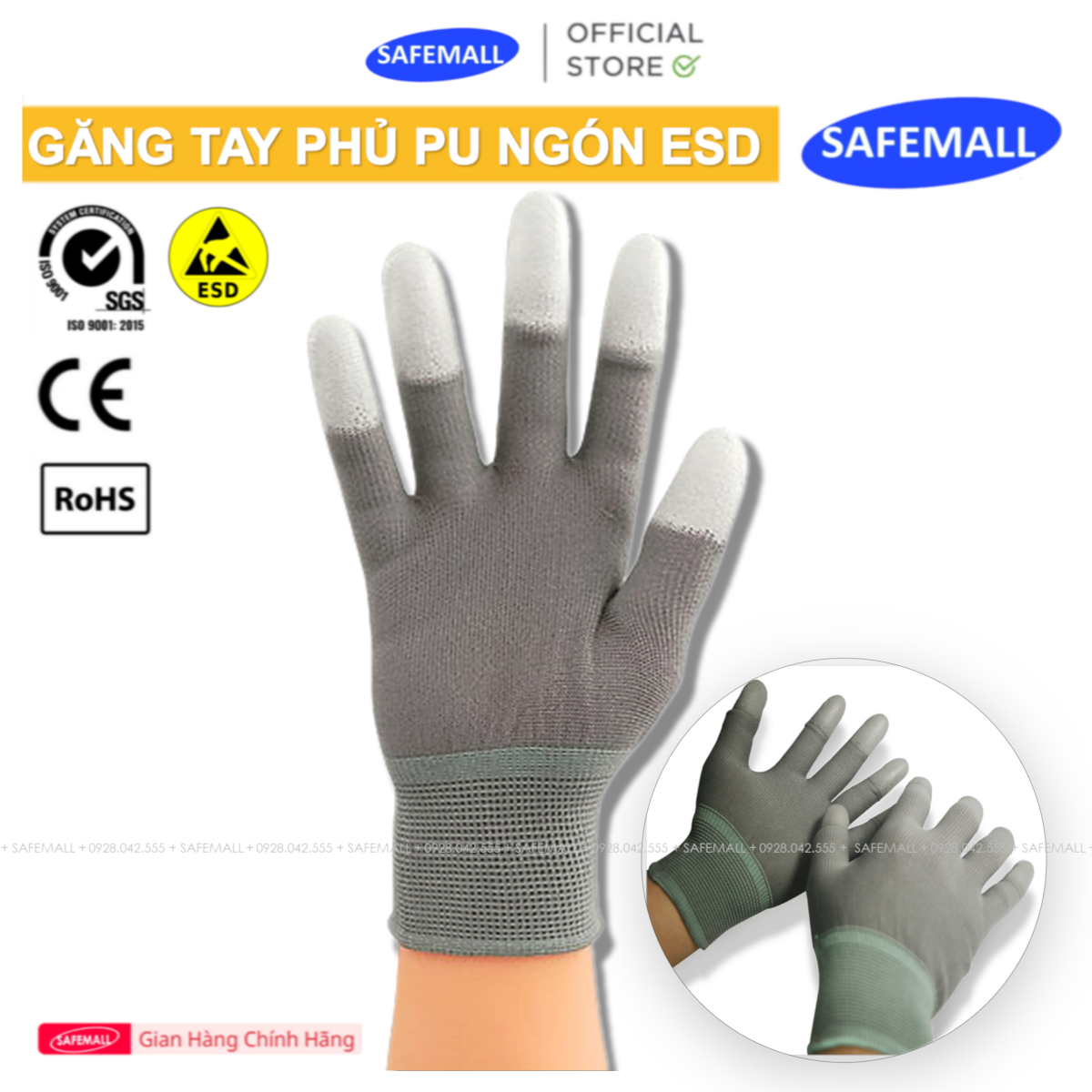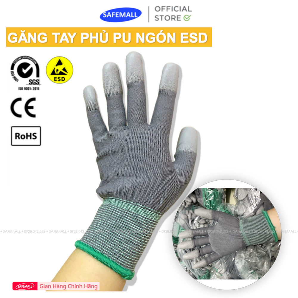 🔥GĂNG TAY PHỦ PU ĐẦU NGÓN CHỐNG TĨNH ĐIỆN XÁM CHẤT LƯỢNG CAO - HÀNG CHÍNH HÃNG SAFEMALL